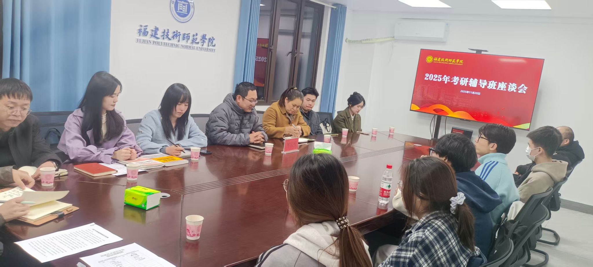 11月20日,我校2025年考研辅导班座谈会在林联兴科技楼608会议室召开。教务处副处长林宗栋,考研政治、数学、英语辅导班老师及辅导班学生代表参会,会议聚焦考研辅导班查漏补缺、提质备考,通过征集师生意见完善服务举措,全力助力考研学子高效备考。