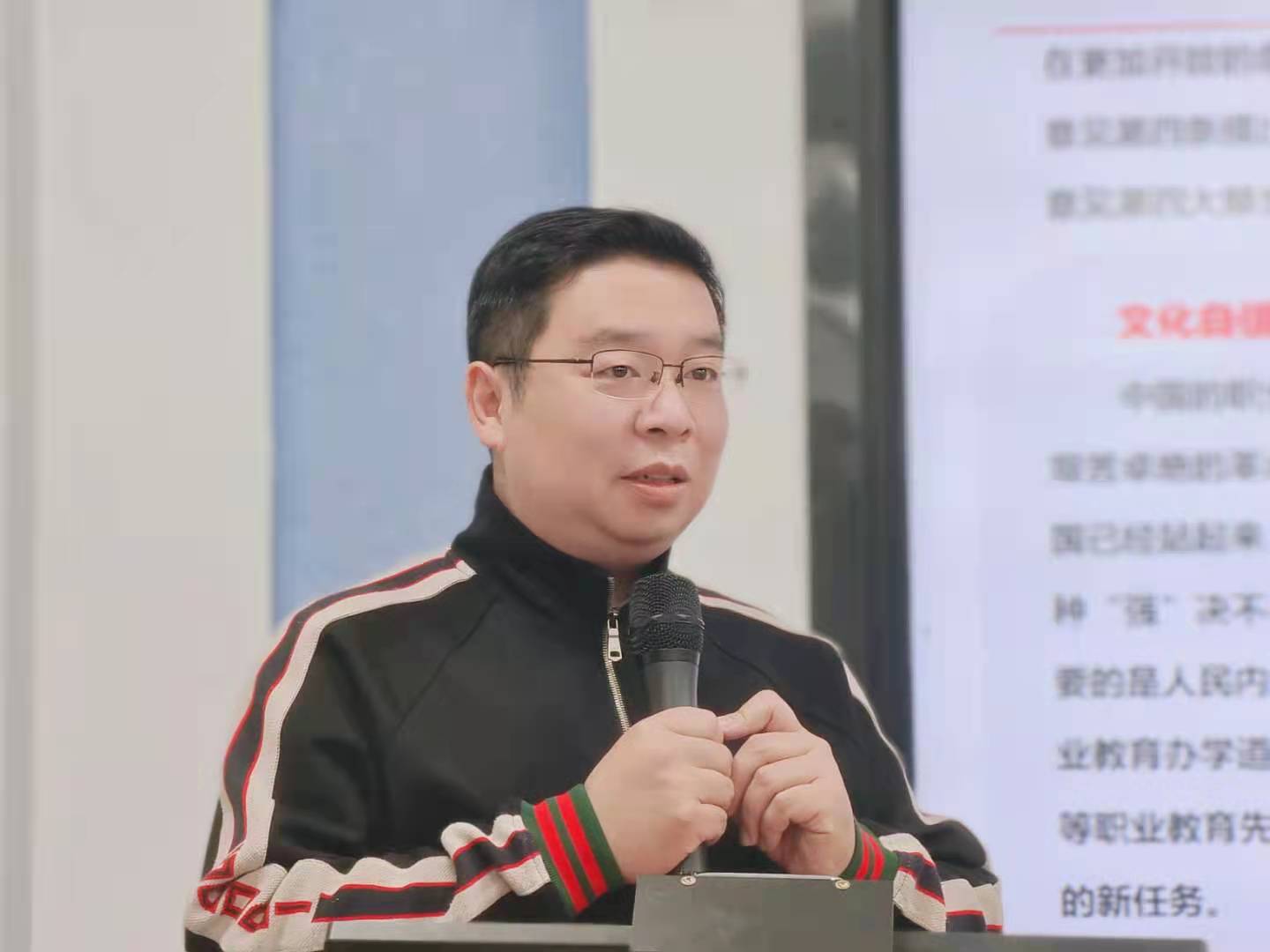 齐斌同志从职业教育高质量发展文件评述、职教师资发展任务解读、学校的使命与愿景等三方面展开报告。他指出,我校的愿景和未来的工作重心是服务职业教育发展需要,职教师资专业要注重职教师资培养,注重产教协同育人,注重开放办学。