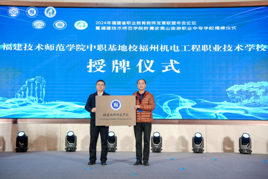 2024年12月30日,2024年福建省职业教育教师发展联盟年会论坛暨福建技术师范学院附属武夷山旅游职业中专学校揭牌活动在武夷山隆重举行,福建技术师范学院副校长姜兴山、南平市教育局副局长黄小青、武夷山市政协副主席、教育局局长兰智权、福建师范大学教育学院教育系主任杨启光、江西科技师范大学教育学部主任欧阳忠明、福建艺术职业学院马克思主义学院院长郑元凯、福建商贸学校党委书记兰享华、南平市教育局高职科科长钟音、武夷山市教育局副局长陈晴、武夷山旅游职业中专学校党总支书记林谋清及校长吴应辉、福建技术师范学院教授陈赵阳及胡剑锋等出席本次签约揭牌仪式,并共同为福建技术师范学院附属武夷山旅游职业中专学校揭牌。省内外职业教育研究专家代表、福建省职业教育教师发展联盟会员单位代表、福建技术师范学院附属校基地校代表、职业院校代表、企业嘉宾等参加了有关活动。