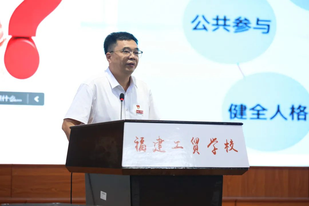 签约揭牌仪式后,福建省中职学生核心素养培育学术论坛开讲。广东省中等职业学校德育指导委员会主任、广东省中等职业学校德育研究与指导中心主任汪永智,江苏省职业教育与终身教育研究所所长、江苏省职教课程教材研究中心主任、江苏省职教师资培训中心主任方健华,福建理工学校党委书记、校长,福建省职业教育教师发展联盟思政工作委员会主任江国奋,福建船政交通职业学院团委书记兼武夷新区职教园副主任陈慧,福建工贸学校党委书记、校长张秋强等5位专家学者,分别作了《从他律到自律——中职生公约研制与实践思考》《从能力本位到素质本位:新时代职业院校高质量学生职业素养教育与评价新思维》《新时代中职学校思政工作改革探索》《第二课堂贯通的三全育人平台建设——以福建船政交通职业学院为例》《推进德育模式创新,培育学生核心素养——以福建工贸学校为例》专题报告。