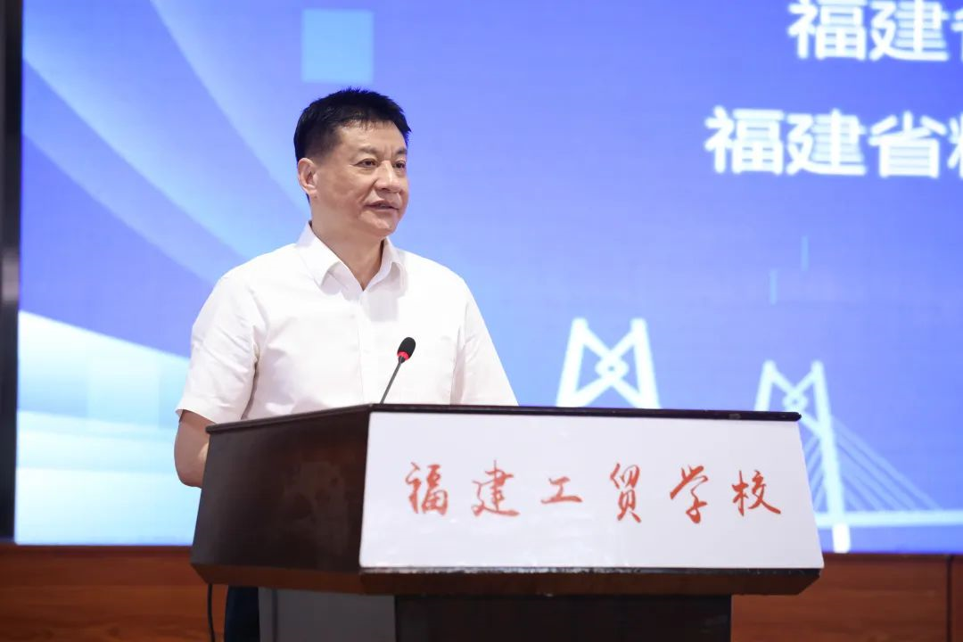 福建工贸学校党委书记、校长张秋强致辞。他表示,在两校合作办学的契机之下,福建工贸学校将在定位类型化、办学多样化、体系融通化、制度系统化、合作纵深化等方面不断开拓进取,打造中职和本科院校一体化协同育人“大职教”模式,培养更多高素质技术技能人才、能工巧匠、大国工匠,办好人民满意的职业教育。