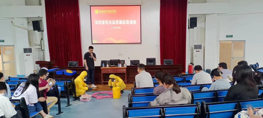 5月24日下午,我校举行了实验室危险化学品泄漏应急演练。材料与包装工程学院、食品与生物工程学院、海洋学院的部分师生参加了演练活动。