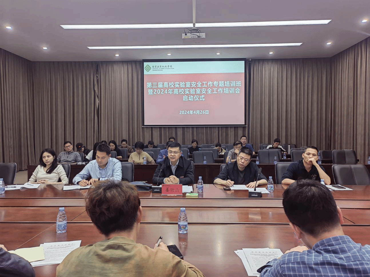4月26日下午,教育部召开2024年高校实验室安全工作视频培训会,我院在图书馆学术报告厅设立分会场。院党委委员、副院长姜兴山教授,教务处、科研处、安全保卫处(武装部)、后勤管理处、基建处负责人,各二级学院分管实验室负责人、实验室主任、实验室安全管理人员等参加了会议。