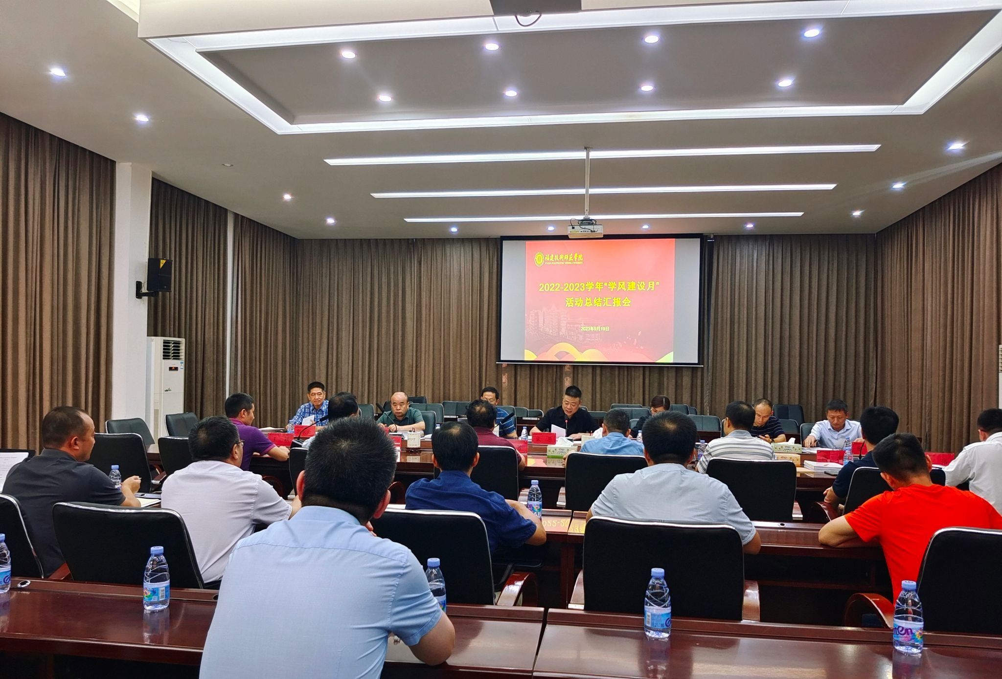 9月19日下午,我校在图书馆学术报告厅举行2022-2023学年“学风建设月”总结汇报评比活动。会议由教务处副处长(主持工作)宋原主持。教务处科级以上干部、各教学单位党政领导等参加了活动。