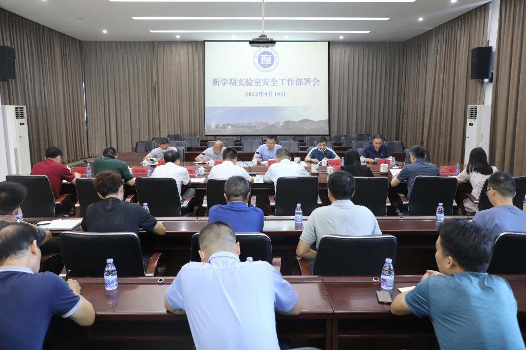 9月19日,为贯彻落实2022年度全省高校实验室安全工作培训会议精神,我校组织召开新学期实验室安全工作部署会。校党委副书记林海峰出席会议并作了讲话。教务处、安全保卫处、后勤管理处主要负责人、负责人,各教学单位行政主要负责人、分管实验室负责人、实验室主任以及教务处相关人员参加了会议。