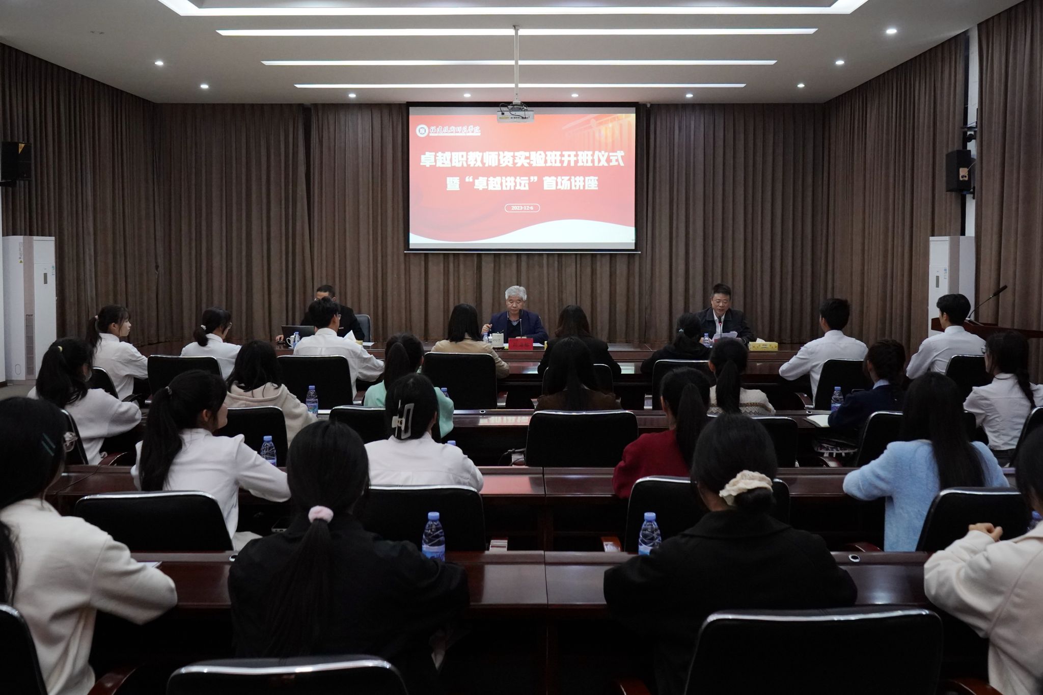 12月6日下午,我校在五马山校区图书馆学术报告厅举行“卓越职教师资实验班”开班仪式暨“卓越讲坛”首场讲座。校党委书记赖海榕教授出席开班仪式并作了讲座。教务处负责人和有关成员以及2022级“卓越职教师资实验班”全体学生参加活动。
