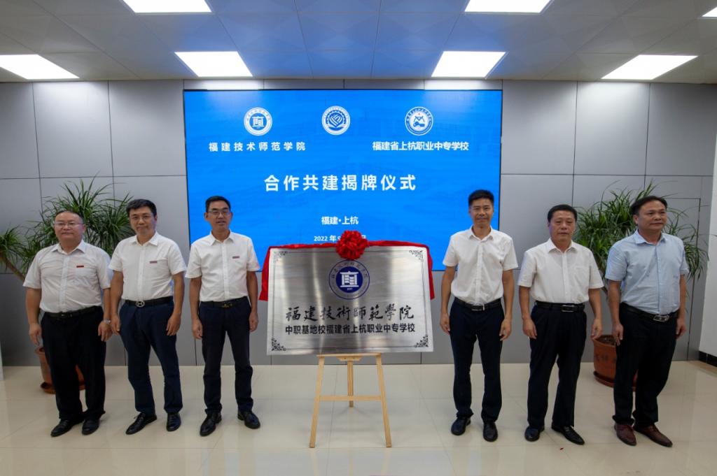 领导共同为中职基地校福建省上杭职业中专学校揭牌。
