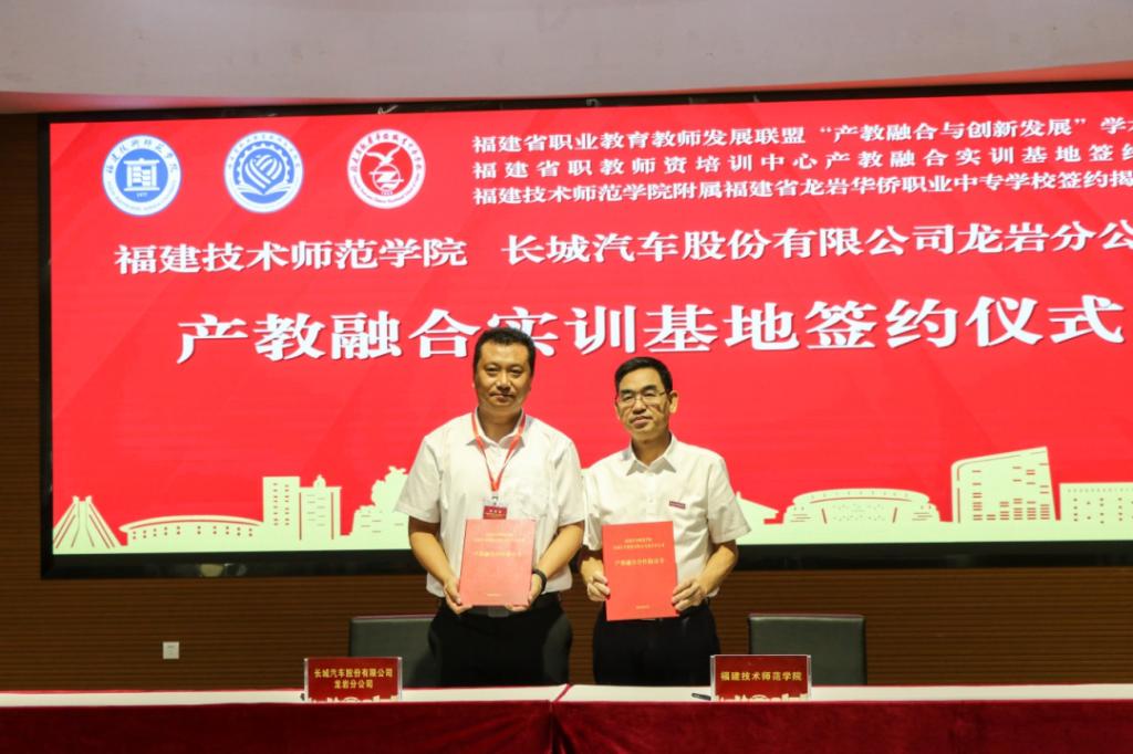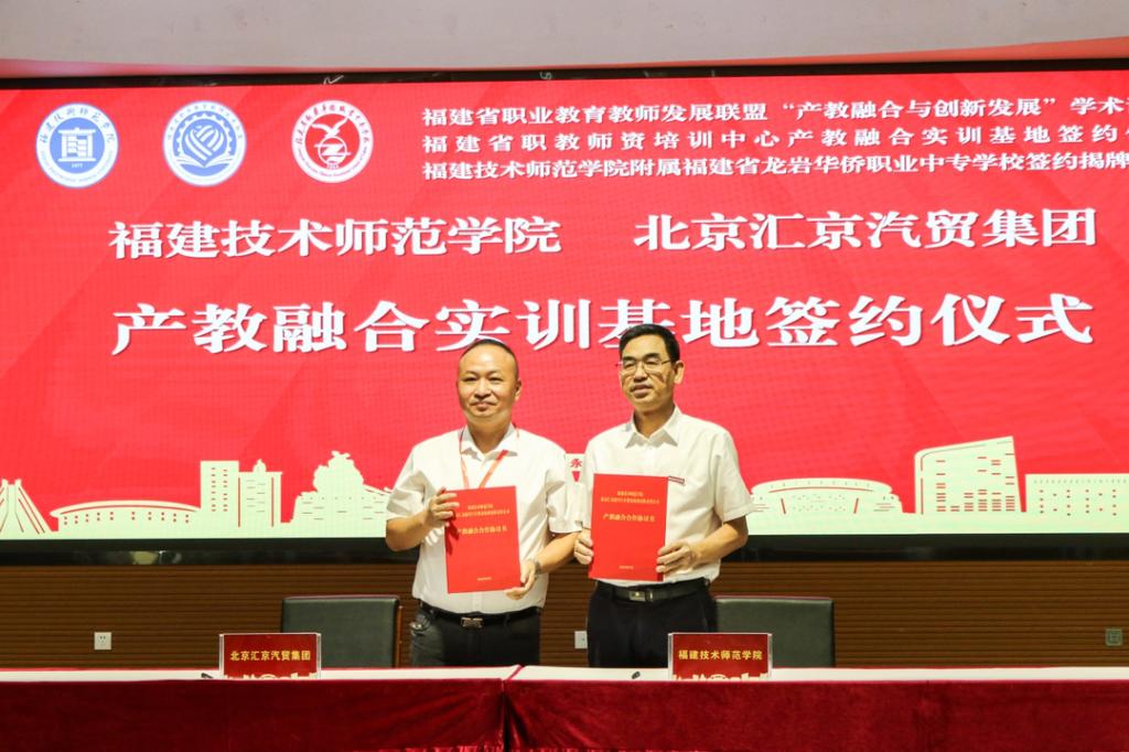 福建省职教师资培训中心与分别与北京汇京汽贸集团、长城汽车股份有限公司龙岩分公司签订产教融合实训基地协议。