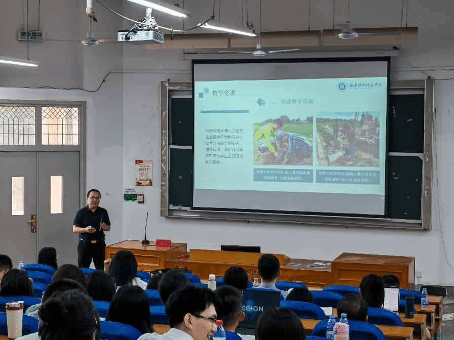 本次活动邀请到课程思政教学名师福建理工大学欧阳恒老师做开场讲座。欧阳恒老师从理论高度到实践案例,全方位、深层次地剖析了“课程思政”的内涵与实施策略。她的讲解让与会教师对“课程思政”有了更为深入、全面的理解,现场不时响起热烈的掌声。