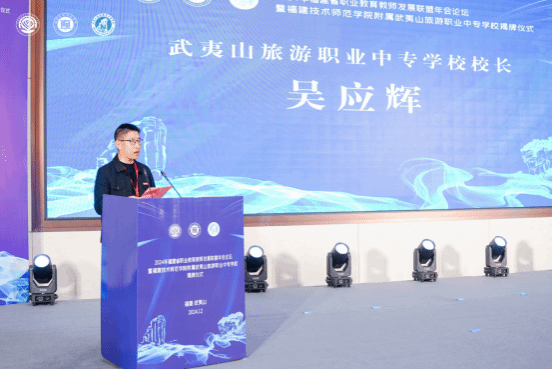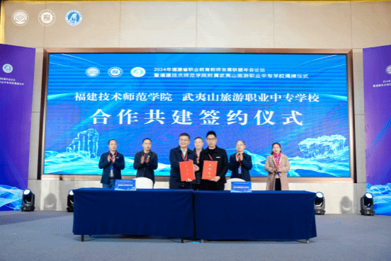2024年12月30日,2024年福建省职业教育教师发展联盟年会论坛暨福建技术师范学院附属武夷山旅游职业中专学校揭牌活动在武夷山隆重举行,福建技术师范学院副校长姜兴山、南平市教育局副局长黄小青、武夷山市政协副主席、教育局局长兰智权、福建师范大学教育学院教育系主任杨启光、江西科技师范大学教育学部主任欧阳忠明、福建艺术职业学院马克思主义学院院长郑元凯、福建商贸学校党委书记兰享华、南平市教育局高职科科长钟音、武夷山市教育局副局长陈晴、武夷山旅游职业中专学校党总支书记林谋清及校长吴应辉、福建技术师范学院教授陈赵阳及胡剑锋等出席本次签约揭牌仪式,并共同为福建技术师范学院附属武夷山旅游职业中专学校揭牌。省内外职业教育研究专家代表、福建省职业教育教师发展联盟会员单位代表、福建技术师范学院附属校基地校代表、职业院校代表、企业嘉宾等参加了有关活动。
