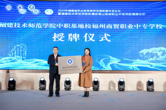 福建技术师范学院副校长姜兴山为福建技术师范学院中职基地校福建工业学校、福建省邮电学校、福州机电工程职业技术学校、福州商贸职业中专学校四所中职基地校授牌。