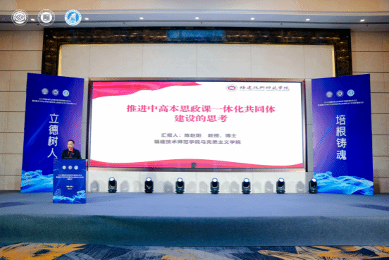 福建技术师范学院马克思主义学院陈赵阳教授作题为《推进中高本思政课一体化建设的思考》主旨报告