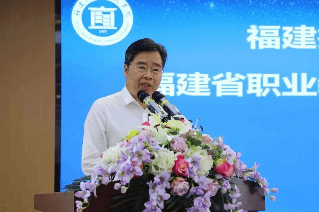 福建技术师范学院校长、福建省职业教育教师发展联盟理事长廖深基致辞。他表示,在福建省教育厅的大力支持下,福建技术师范学院正大力推进省职教师资培训中心、省职教教师发展联盟、附属校、基地校、合作校等建设,努力推动形成人才共育、师资共建、资源共享的职教发展体系和格局,助力福建职教高质量发展。他指出,将福建理工学校纳入福建技术师范学院中职基地校,是福建省教育厅加快构建特色现代职业教育体系的先行举措。学校将以基地校福建理工学校揭牌成立为契机,深入贯彻落实习近平总书记关于职业教育的重要指示精神,认真落实《职业教育法》,按照福建省委、省政府的要求,发挥定位优势和政策优势,全面指导和支持基地校福建理工学校加快高质量发展,着力建设成为教师加快成长的重点基地、校校资源共享的实践基地、产教融合的创新基地、人才贯通培养的实验基地、专业创新发展的先行基地、培养质量提升的示范基地,助力打造形成具有中国特色的现代教育体系“福建样板”。他希望基地校福建理工学校抢抓机遇、乘势而上,继续发挥好福建省中职教育改革发展排头兵作用,为福建经济社会发展作出新的更大贡献。