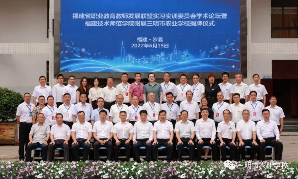6月15日,福建技术师范学院附属三明市农业学校揭牌仪式、福建省职教师资培训中心产教融合实训基地签约仪式和福建省职业教育教师发展联盟实习实训委员会学术论坛等活动在三明市农业学校举行。福建技术师范学院校长廖深基、副校长陈志勇,三明市委常委、宣传部部长陈列平,三明市委教育工委书记、教育局党组书记刘若嘉,三明市沙县区委书记吴健成,三明市农业学校党委书记、校长罗世钦等出席签约揭牌仪式,并共同为福建技术师范学院附属三明市农业学校揭牌。签约揭牌仪式由三明市委教育工委书记、市教育局党组书记刘若嘉主持。活动通过线上线下相结合的方式进行,省内外职业教育研究专家代表、省职业教育教师发展联盟会员单位代表、企业代表参加了有关活动。沙县电视台进行全程直播,吸引了12.4万多人次在线观看。