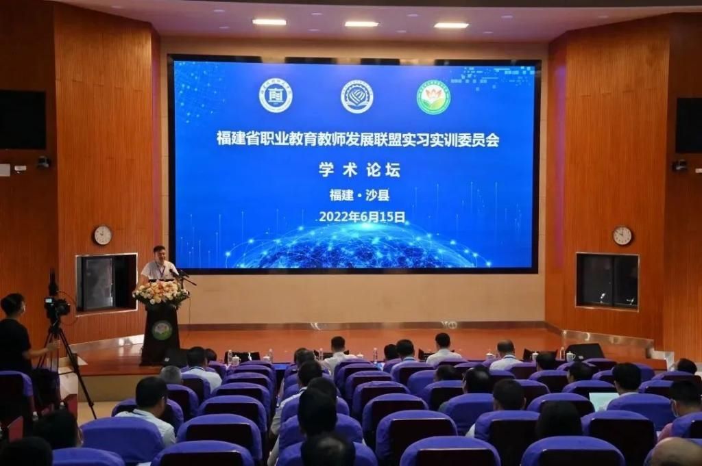 福建省职业教育教师发展联盟实习实训委员会学术论坛开讲。淄博职业学院教务处副处长宋健,天津大学教育学院副院长、国家“双高”项目建设咨询专家委员会委员、教育部哲学社会科学重大攻关项目首席专家、博士生导师潘海生,沙县区委常委、宣传部部长乐生龙,我校教务处副处长吴代顺,附属三明市农业学校汽车运用与维修专业群负责人林观钎等5位专家学者,先后作了《深化认识 规范管理 进一步提升职业学校学生实习质量》《从新修订的<职业教育法>看产教融合的未来景象》《产教融合助力沙县小吃转型升级的实践探索》《紧扣省市专业布局,提升中职实习实训质量》《“五阶递进式”实训教学体系的构建与实施》等专题报告。与会人员围绕探索现代学徒制人才培养模式、产教融合型实训基地建设和实习实训课程改革等问题交流经验、深入研讨。福建技术师范学院陈志勇副校长作了精彩点评和总结。