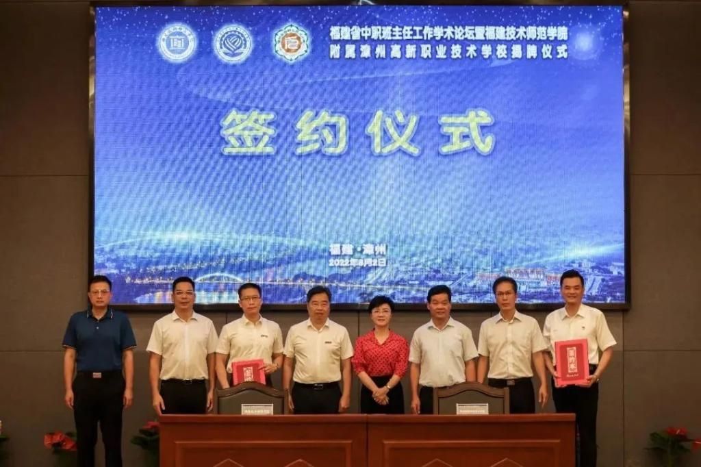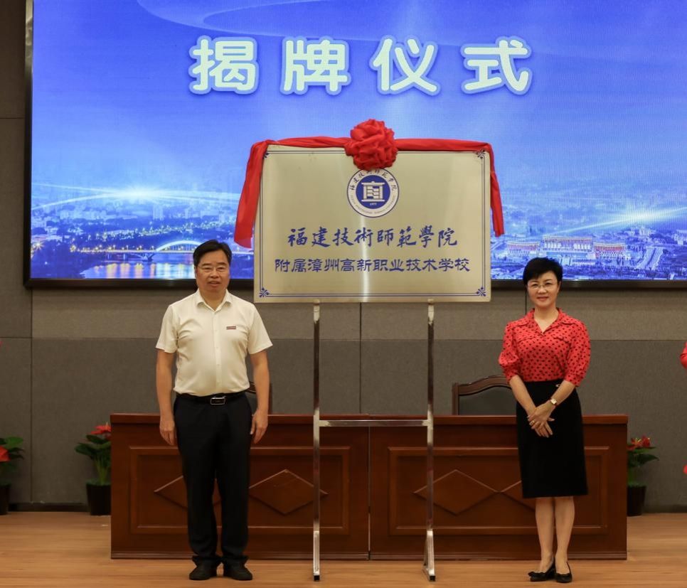 8月2日,福建职教联盟理事长单位福建技术师范学院附属漳州高新职业技术学校揭牌仪式在漳州举行。漳州市人民政府副市长余向红,福建技术师范学院校长、党委副书记廖深基、副校长陈志勇,漳州市委高新技术产业开发区党工委书记苏孝道,漳州高新职业技术学校党委书记、校长赵为船等出席了揭牌仪式。漳州市委教育工委书记、市教育局党组书记、局长黄江辉主持揭牌仪式。