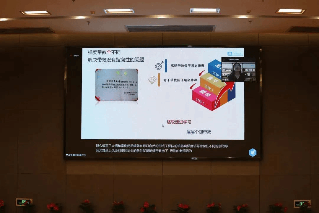 报告4:庄敏琦的《党建引领 立德树人——班主任成长导航123模式汇报》提出“一体两翼三机制”的班主任成长导航模式。