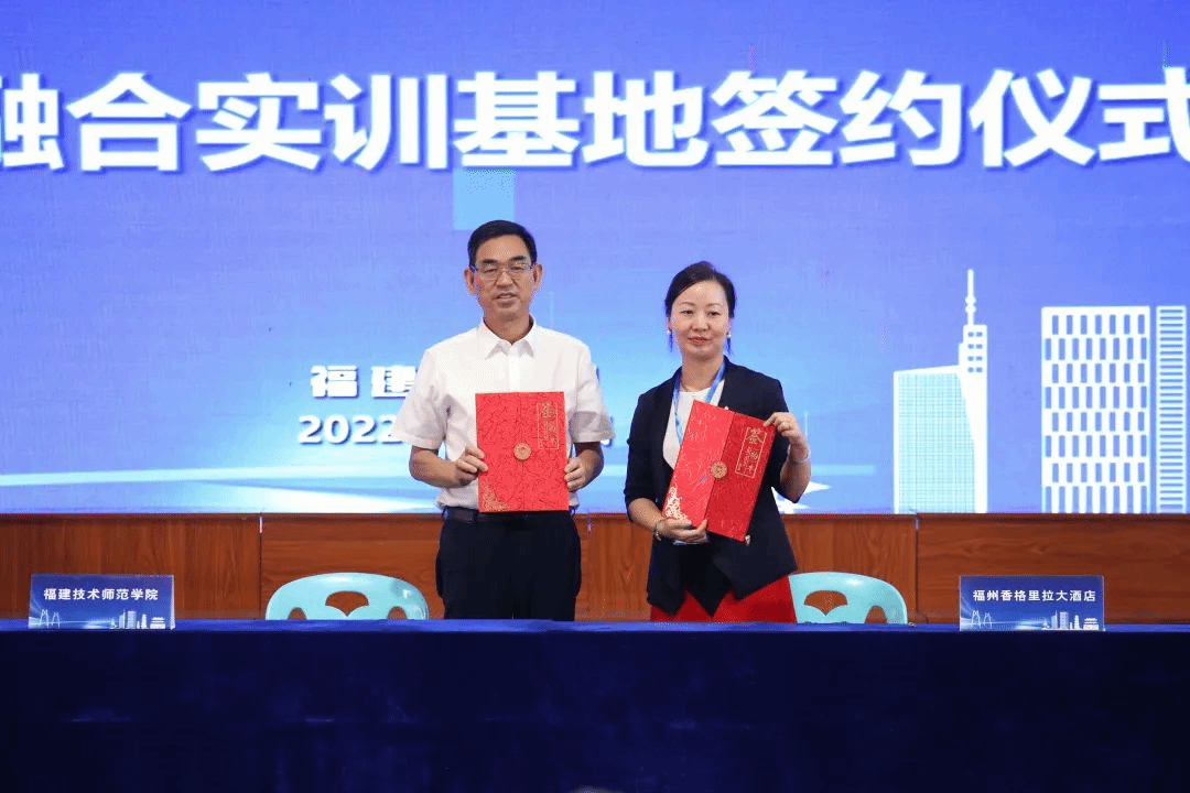 福建省职教师资培训中心与福州香格里拉大酒店、福建佳丽旺食品有限责任公司签订产教融合实训基地。
