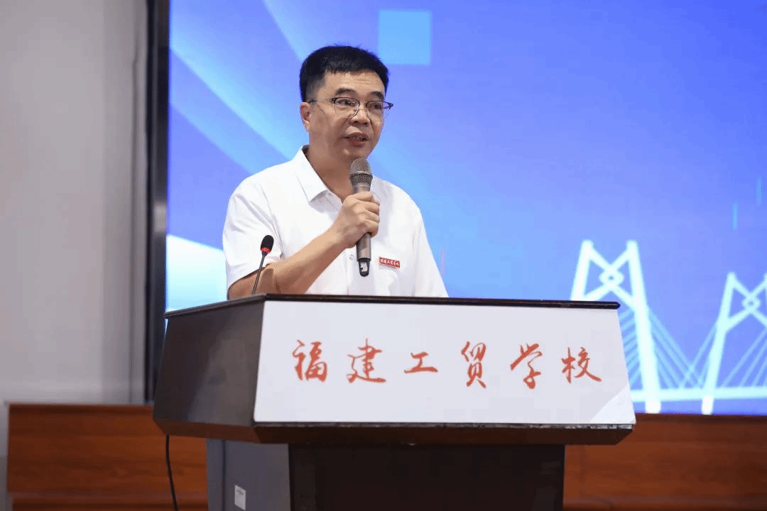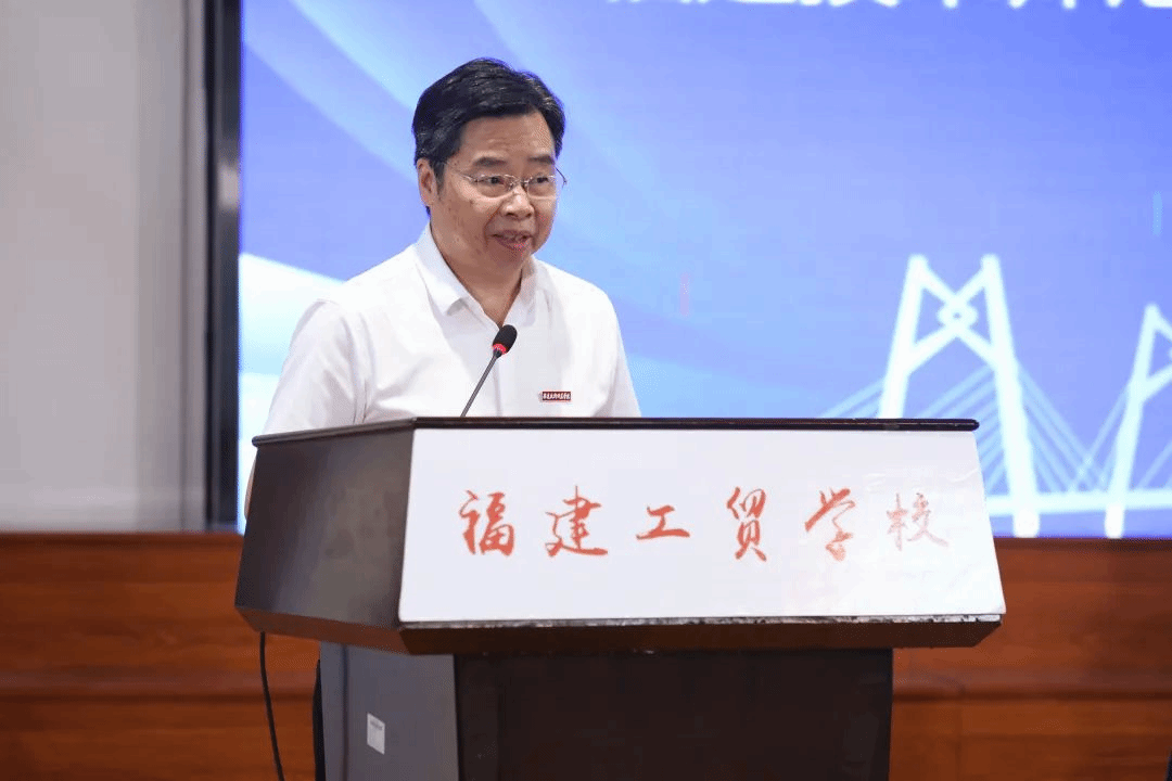 福建工贸学校党委书记、校长张秋强致辞。他表示,在两校合作办学的契机之下,福建工贸学校将在定位类型化、办学多样化、体系融通化、制度系统化、合作纵深化等方面不断开拓进取,打造中职和本科院校一体化协同育人“大职教”模式,培养更多高素质技术技能人才、能工巧匠、大国工匠,办好人民满意的职业教育。